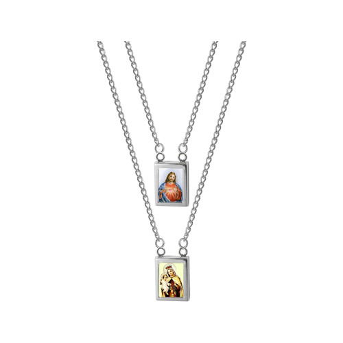 Escapulário de Aço Mini Nsra do Carmo e Sagrado Coração de Jesus 9x7mm 45cm (2796445-)