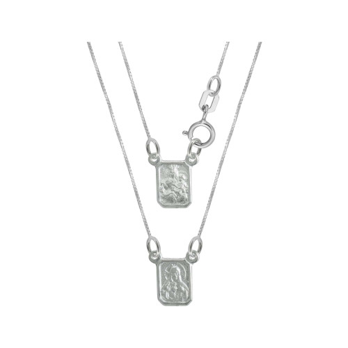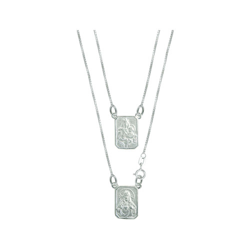 Escapulário de Prata Nossa Sra do Carmo e Sagrado Coração de Jesus 60cm (3207560-)
