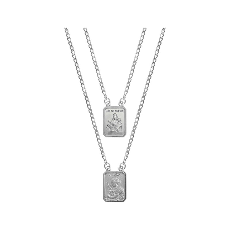 Escapulário em Aço Nossa Sra. do Carmo e São João 14x11mm 60cm