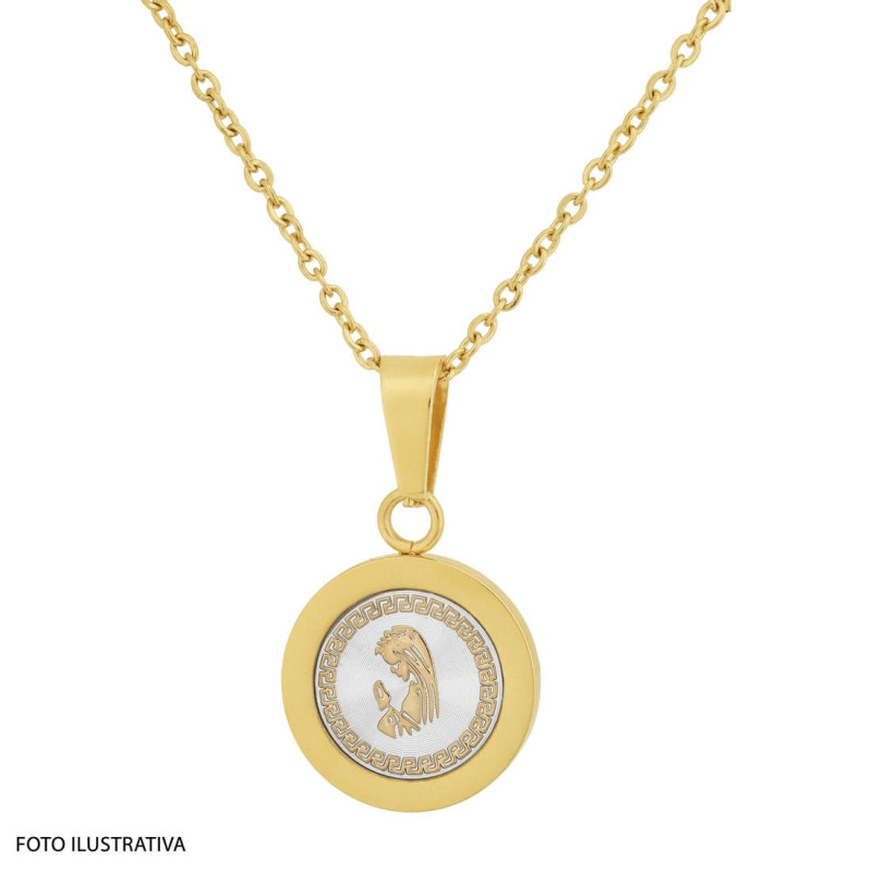 Pingente em Aço Nossa Sra. de Fátima com MOP IPG Redondo 15mm