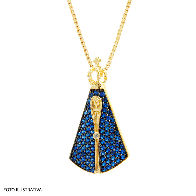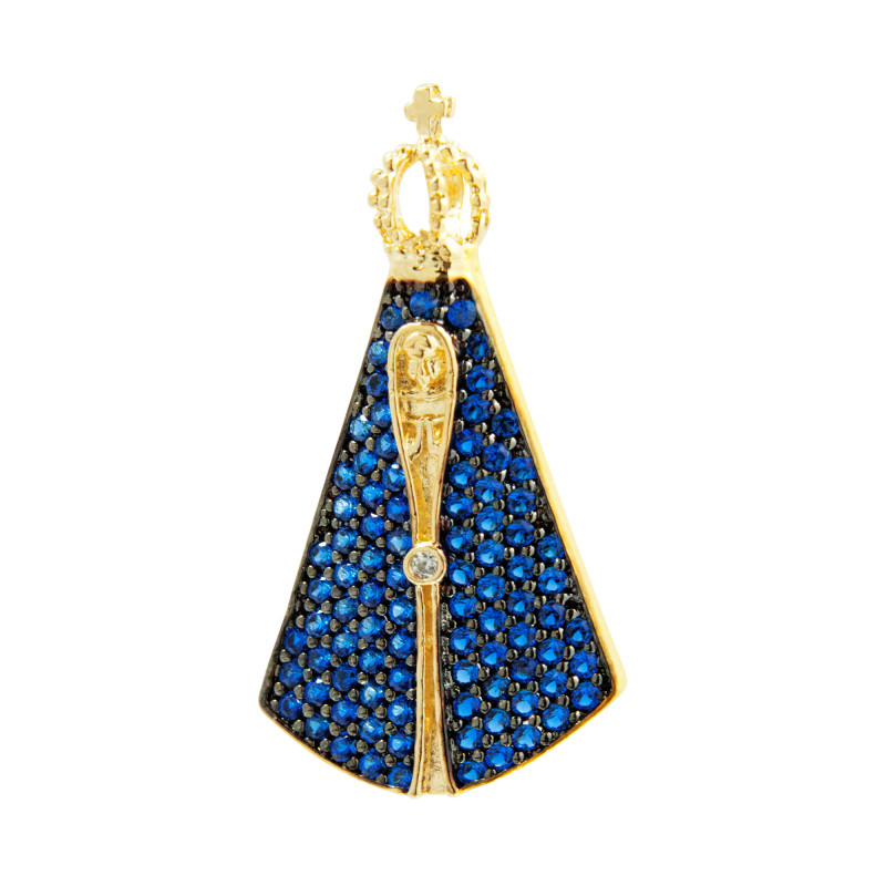 Pingente em Prata Revestido Nossa Sra. Aparecida com Safira e Zircônia 31x11mm