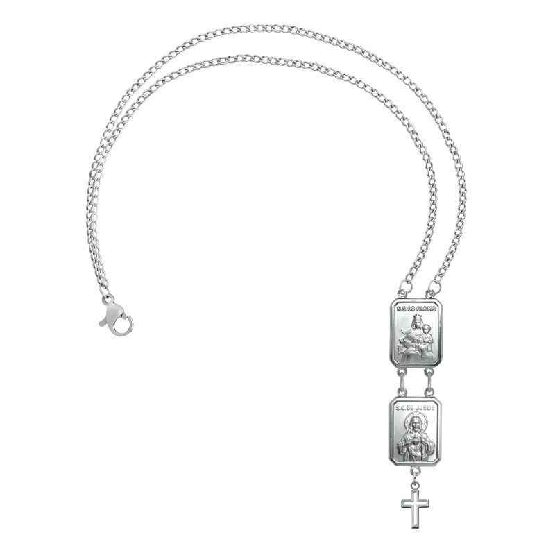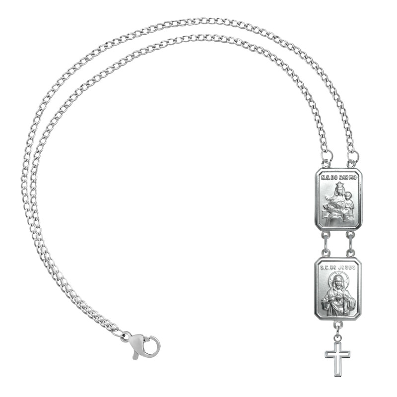 Pulseira Escapulário de Aço Sagrado Coração de Jesus e Sra do Carmo com cruz